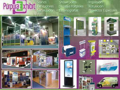 • Diseño, Renta, Venta y Montaje de Stands • Displays Portátiles • Escenografías • Proyectos Especiales • Pabellones • Gráficos con laminación, Tela, Vinyl Lona, Lona Mesh y Canvas. • Impresión en Gran Formato y Rotulación de Vehículos y Flotillas. • Exhibidores para Punto de Venta.